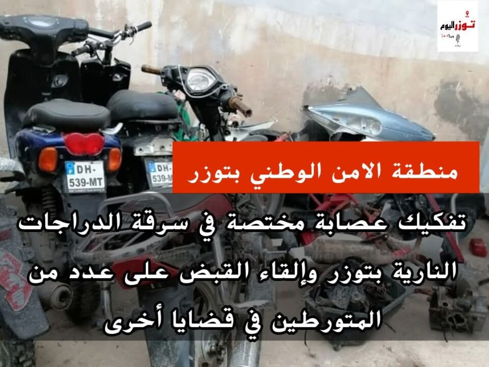 بعد تفشّي ظاهرة السرقات، وخاصة سرقة الدراجات النارية، تجنّدت قوات الأمن الداخلي بتوزر للحدّ من هذه الظاهرة. وقد تمكّن أعوان الشرطة من تفكيك عصابة مختصّة في سرقة وتفكيك الدراجات النارية، وإلقاء القبض على عدد من المتورّطين.