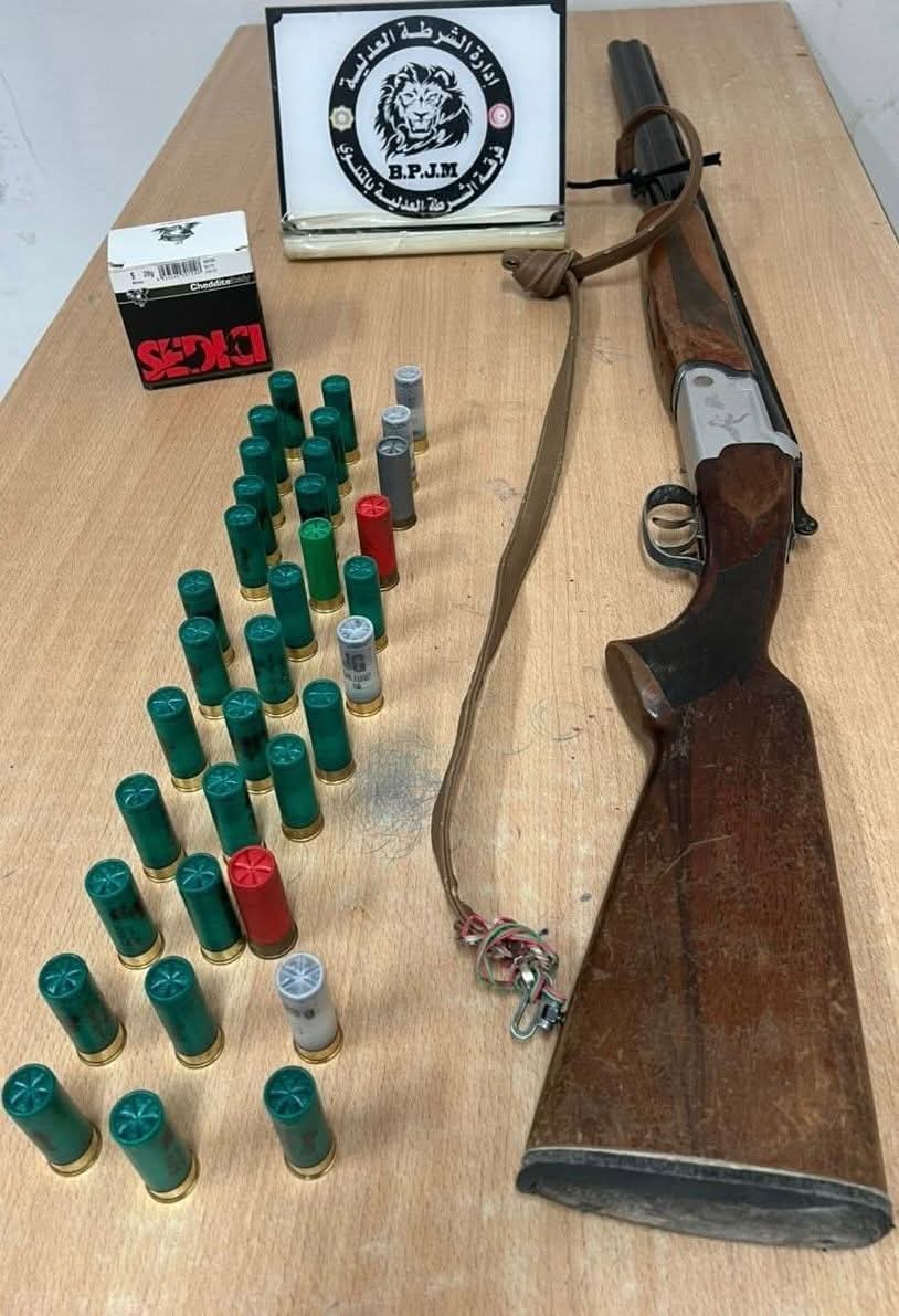 تمكنت فرقة الشرطة العدلية بمدينة المتلوي من القبض على شخص بحوزته بندقية صيد دون رخصة قانونية، وذلك في إطار عملها المتواصل للتصدي لمختلف مظاهر الجريمة وحفظ الأمن العام.