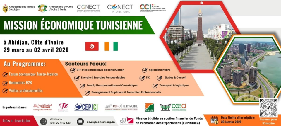 تركز كونكت الدولية كثيرا على السوق الافريقية عبر تمهيد الطريق امام المؤسسات التونسية للنفاذ الى هذه اسوق الواعدة ولذلك في كل مرة تنظم بعثة استكشافية لرجال اعمال تونسيين الى بلد افريقي لمعاينة مكامن الاستثمار الواعد هناك. في هذا الاطار وبعد النجاح الذي حققته بعثات الاستكشاف الاستثمارية متعددة القطاعات إلى أبيدجان في مارس من عام 2017 وديسمبر من عام 2022، تنظم كونكت الدولية بعثة اقتصادية جديدة إلى العاصمة الايفوارية أبيدجان بناءً على طلب عدد من الجهات الاقتصادية التونسية الفاعلة والراغبة في الاستثمار في هذا البلد الواعد اقتصاديا سواء عبر التصدير او اقامة شراكات استثمارية. هذه البعثة المنظمة من طرف كونكت الدولية ستزور ابيدجان من 29 مارس الى 2 افريل 2026 وستتم بالتعاون مع السفارة التونسية في أبيدجان، وسفارة جمهورية الكوت ديفوار في تونس، وغرفة التجارة والصناعة التونسية الإيفوارية، وعدد من الشركاء، من بينهم الخطوط التونسية، ومركز تنمية الصادرات (CEPEX)، ومركز تنمية الاستثمار في ساحل العاج (CEPICI)، وغرفة التجارة والصناعة في ساحل العاج (CCI-CI)، والاتحاد الإيفواري للمؤسسات الصغيرة والمتوسطة (FIPME)، والاتحاد العام للمؤسسات في الكوت ديفوار (CGECI). وسيتم في هذه الرحلة الاستكشافية اعطاء الاولوية للشركات الصغرى والمتوسطة الساعية إلى توسيع أعمالها دوليًا، لا سيما في الأسواق الناشئة وايجاد موطئ قدم لمنتجاتها واقامة شراكات مع نظيراتها الايفوارية للوصول الى باقي الاسواق الافريقية القريبة من الكوت ديفوار وكلها اسواق واعدة كما ستتيح هذه البعثة فرصة للقائمين على المؤسسات التونسية للقاء اصحاب المؤسسات في الكوت ديفوار وصناع القرار من الشركات والهيئات الحكومية ومختلف الوزارات الإيفوارية المعنية بهدف بناء شراكات وتحالفات استراتيجية. اما من حيث القطاعات المشاركة في هذه البعثة فتتعلق بقطاع البناء وصناعة مواد البناء والأغذية الزراعية و التكوين المهني والتعليم العالي و تكنولوجيا المعلومات والاتصالات والرعاية الصحية و الطاقة والطاقات المتجددة و التعبئة والتغليف والصناعات الكيميائية والبحوث والاستشارات والكهرباء و التبريد والترشيح الصناعي وصناعة قطع غيار السيارات و الأثاث و السياحة و الحرف اليدوية و النقل والخدمات اللوجستية. كما سيتم على هامش هذه البعثة اقامة المنتدى الاقتصادي التونسي الإيفواري والذي سيشكل منصة مهمة لتبادل الافكار حول سبل تنمية التعاون الاقتصادي بين البلدين على مستوى القطاع الخاص وتكثيف المبادلات التجارية وتبادل الاستثمارات كما سيتم عقد جملة من الاجتماعات الثنائية المتخصصة اضافة الى تنظيم زيارات للشركات التونسية المشاركة الى المصانع الايفوارية. هذه الزيارة التي تتيحها كونكت الدولية للمؤسسات التونسية تمثل فرصة مهمة للوقوف على مدى التطور في الاقتصاد الايفواري واقامة علاقات متنية مع القطاع الخاص هناك الذي لا ينشط فقط في الكوت ديفوار بل في اغلب بلدان غرب افريقيا ذات الاقتصاديات الناهضة وهو ما سيمكن المؤسسات التونسية ليس فقط من النفاذ الى السوق الايفوارية بل الى اغلب اسواق بلدان غرب افريقيا.