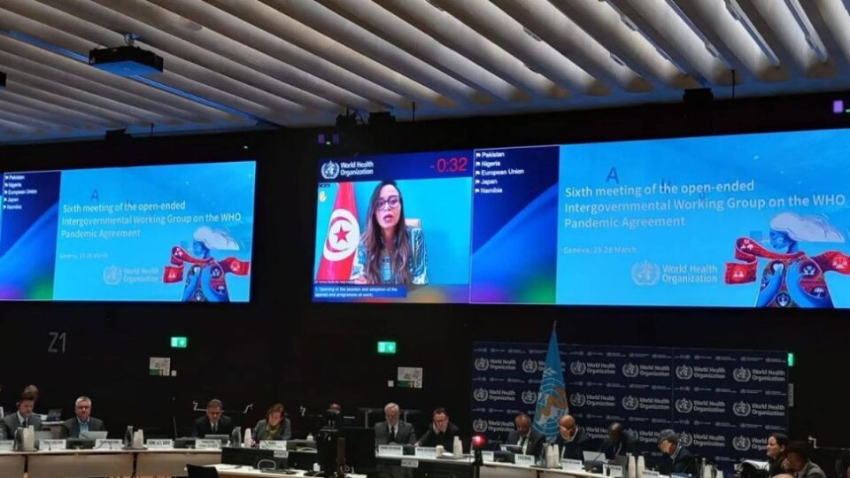 وخلال الجلسة، قدمت الدكتورة نادية بلحاج عمار نقطة الاتصال الوطنية لوزارة الصحة لدى الفريق العامل، مداخلة أكدت فيها التزام تونس بالمساهمة الفاعلة في المفاوضات، خاصة فيما يتعلق بوضع آلية عادلة لتقاسم المنافع، تضمن النفاذ السريع والمنصف والناجع إلى الأدوية واللقاحات خلال الطوارئ الصحية.