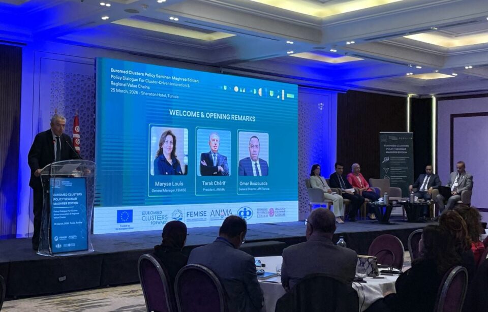 نظمت شبكة ANIMA للاستثمار بالتعاون مع شبكة FEMISE، ووكالة النهوض بالصناعة والتجديد، وERF Latest، ندوة رفيعة المستوى في تونس تمثلت في أشغال الندوة الأورومتوسطية حول سياسات التجمعات العنقودية – نسخة المغرب العربي. ركزت الندوة على دور التجمعات العنقودية في تحفيز الابتكار وتعزيز سلاسل القيمة الإقليمية، وذلك في إطار مشروع Euromed Clusters Forward، الممول جزئيًا من الاتحاد الأوروبي. ومثلت الندوة التي شهدت مشاركة دول من ضفتي المتوسط على غرار فرنسا واسبانيا وبولونيا ورومانيا والجزائر والمغرب وتونس، فرصة للحوار وتبادل الخبرات حول الدور الاستراتيجي للتجمعات العنقودية في دفع التصنيع والتجديد والتنمية الاقتصادية في المنطقة من خلال التطرق إلى محاور أساسية تشمل الارتقاء الصناعي وتمويل الابتكار وتطوير الكفاءات إلى جانب تعزيز التعاون بين البحث العلمي والنسيج الصناعي . وحضر الندوة سفير الاتحاد الأوروبي في تونس جيوزيبي بيرون والمديرة العامة للمنتدى الأورومتوسطي لمعاهد العلوم الاقتصادية ماريس لويز، ورئيس شبكة ANIMA lnvestment Network طارق الشريف، والمدير العام لوكالة النهوض بالصناعة والتجديد، عمر بوزوادة كما حضرها عدد من الفاعلين في القطاعين العام والخاص وخبراء دوليين وممثلين عن التجمعات العنقودية من المنطقة الأورو متوسطية. كان الهدف الرئيسي من الندوة التي تخللتها ورشات قطاعية مخصصة للصناعة والتحول الرقمي والطاقة الخضرا جمع صناع السياسات وقادة القطاع الخاص والخبراء من مختلف أنحاء منطقة البحر الأبيض المتوسط لتحديد حلول عملية لتعزيز القدرة التنافسية الصناعية والابتكار. وقد بحثت مواضيع رئيسية ناقشها الحاضرون تمحورت حول التحديث الصناعي والابتكار وتمويل الابتكار والاستثمار المشترك و تنمية المهارات والتعاون بين البحث والصناعة. وتضمنت الجلسة الافتتاحية رفيعة المستوى مداخلات امنها كل من السيدة عفاف شاشي الطياري رئيسة ديوان وزارة الصناعة والطاقة والمناجم والسيد جوزيبي بيروني، سفير الاتحاد الأوروبي لدى تونس والسيد طارق شريف، رئيس شبكة أنيما للاستثمار والسيد عمر بوزوادة، المدير العام لوكالة النهوض بالصناعة والتجديد. وخلصت الندوة بناء على أسلوب تفاعلي وعملي بين المشاركين إلى اصدار توصيات ملموسة ستُسهم في وضع حزمة سياسات إقليمية لتعزيز القدرة التنافسية الصناعية والابتكار وقد مثّلت هذه الندوة انطلاقة سلسلة أوروبية-متوسطية أوسع نطاقًا، جمعت أكثر من 100 جهة معنية من مختلف أنحاء المنطقة.
